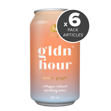 - 6x Gldn Hour Collagen Sparkling Water Peach Ginger, 355 mL