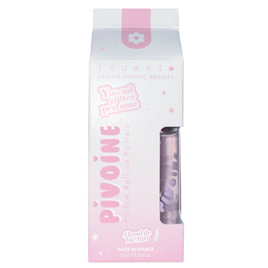 Sparkling Peony Roll-On Perfume A floral, glittery peony-scented perfume with a light, sparkling texture! The roll-on applicator delivers just the right amount of fragrance for a safe, mess-free application. Formulated with over 86% naturally derived ingredients, organic wheat alcohol, vegan, and made in France, designed for the well-being of the whole family, from age 3+.