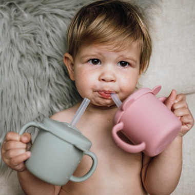 Award winning, luxurious and adorable Grow with Me Silicone Cup makes transitioning from a bottle to cup easy and fun! Equipped with a soft silicone straw (with stopper), cleaning brush, and two handles, this training cup is the perfect way for little ones to learn how to drink like a big kid! When they are ready to drink from an open cup, simply remove the lid and straw. Also, now you can swap out the drinking with the new snack lid to convert it into a snack cup! Two functions, in one cup! Made from 100% food grade silicone, our cups are free from harmful chemicals such as BPA, lead and phthalates.