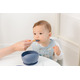 - Silicone is soft and flexible which keeps baby comfortable and rolls up for easy storage.