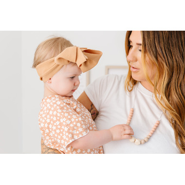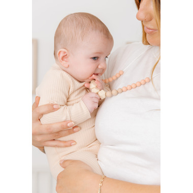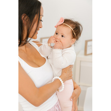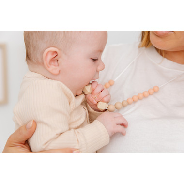 Glitter & Spice's teething accessories are the most coveted amongst moms with teething babies. They create stylish silicone teething necklaces and teethers that are safe and fun for babies to chew! Made from 100% food grade silicone, the soft texture feels good on sore, teething gums, and provides visual and tactile stimulations for babies. Glitter & Spice chewelry are truly the perfect accessory, teether, and toy all wrapped up in a cute little package!