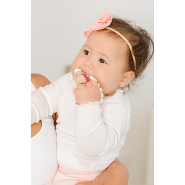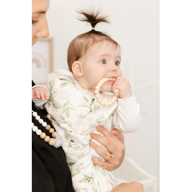 Glitter & Spice's teething accessories are the most coveted amongst moms with teething babies. These stylish silicone teething necklaces and teethers are safe and fun for babies to chew! Made from 100% food grade silicone, the soft texture feels good on sore, teething gums, and provides visual and tactile stimulations for babies. Glitter & Spice chewelry are truly the perfect accessory, teether, and toy all wrapped up in a cute little package!