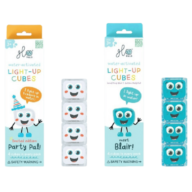 Make playtime bright with Glo Pals Light-Up Cubes. Each pack includes 4 colourful, water-activated light-up cubes with the face of your favourite Glo Pals! Every vibrant, reusable light-up cube lasts a minimum of 30 days or 16 lighted hours and can be used individually or with your favourite Glo Pals characters!