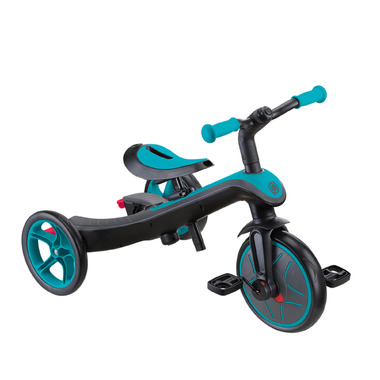EXPLORER TRIKE 4-in-1 comes with a 100% tool-less design (no tools needed to transform!), a patented wheel mechanism, a 2-height adjustable parent handle, 2-height adjustable saddle, high-back seat, removable footrest, EVA foam wheels, and smart pedal storage to provide even more functionality!