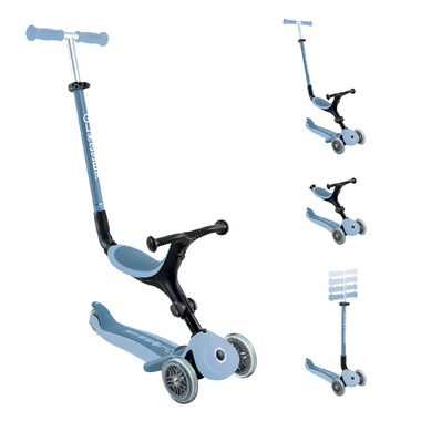 A greener world on wheels! The Globber GO UP ACTIVE ECO is an eco-friendly 3-wheel scooter with seat, designed to grow with your child from 15 months to 9+ years. Made from biodegradable wheat-straw and 100% Global Recycled Standard plastic, this innovative scooter helps families make sustainable choices without sacrificing fun or performance. This versatile ride transforms from a ride-on to a walking bike, and finally into a 3-wheel scooter, adapting perfectly to your childs developmental stages. The tool-free design makes adjustments effortless, while the patented steering lock system and low deck ensure balance, stability, and confidence at every step.