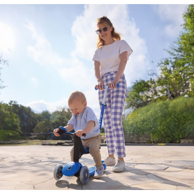 The Globber GO UP Sporty Lights Convertible Scooter starts as a ride-on seat for mom and dad to push the little one on. Once the child is able to push around by his or herself, the T bar handlebar comes off, becoming a pushbike that the little one can independently push around on. As the child grows and enhances their motor skills, the seat of the Globber GO UP Sporty Lights comes off the deck. The original T bar handle, used for mom and dad, now connects to the deck and becomes a Globber Primo 3 Wheel Adjustable Height Scooter! With adjustable handlebars for mom, dad, and the little one, this product offers different functions all in one product!