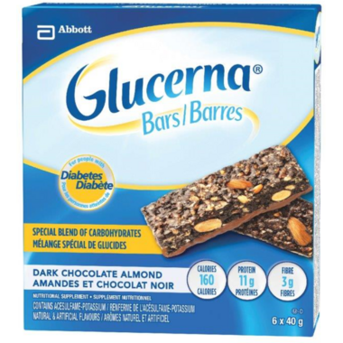 Glucerna® bars are ready-to-eat snacks that fit right into your busy lifestyle. With a special blend of carbohydrates, these bars are specifically designed for people with diabetes. Intended for use as a nutritious snack between meals, or as a dessert, each bar contains 20 vitamins and minerals, with 11 g of protein and 3 g of fibre. Enjoy a variety of nutrients with a delicious taste, perfect for when you're on-the-go