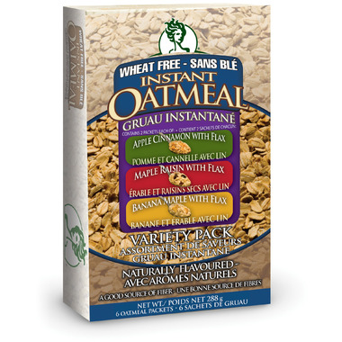 GlutenFreeda's instant oatmeal variety pack makes it possible for everyone to enjoy healthy, nourishing, and high-fiber hot oatmeal in minutes. With three great, all-natural flavors Apple Cinnamon, Banana Maple, and Maple Raisin. Perfect for families and people who crave variety. Made to offer an ideal combination of flavor and health, each oatmeal blend is made with pure oats and flax meal for added nutritional value--making it a safe choice for people who are gluten intolerant or have celiac.