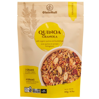 GluteNull Quinoa Granola is a gluten-free, vegan granola. Loaded with organic quinoa, coconut, sunflower and chia seeds, it's a nutrient-packed breakfast or snack to fuel your day with deliciously clean energy!