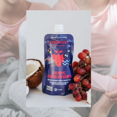 Ingredients: Filtered water, organic pear and concord grape juice, whey protein isolate, coconut cream, soluble corn fiber, organic tapioca solids, pectin, natural flavours, organic honey, citric acid, ascorbic acid, mushroom powder vitamin D