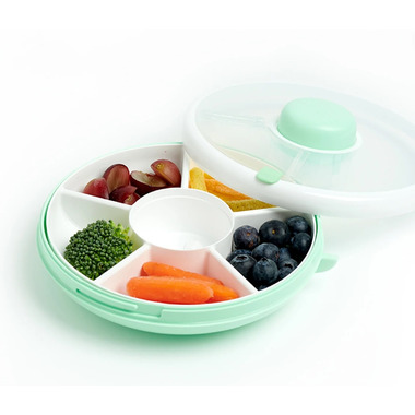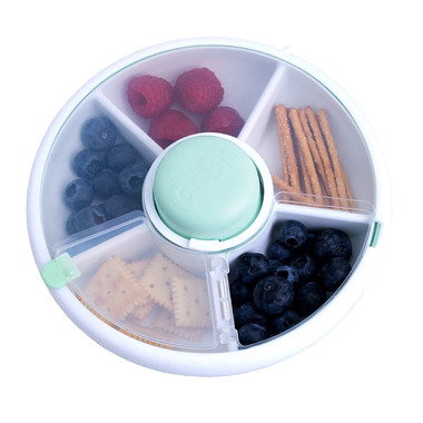 The Snack Spinner makes snacking on-the-go a breeze with five compartments, all in one container. The only dispenser with an interactive button to keep kids engaged as they choose which snack they want to eat!