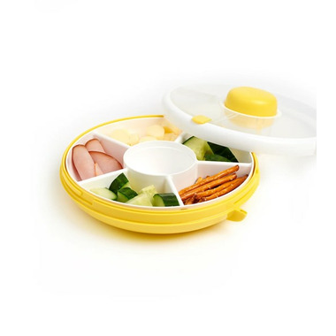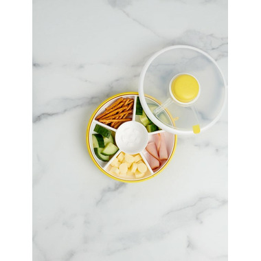 The Snack Spinner makes snacking on-the-go a breeze with five compartments, all in one container. The only dispenser with an interactive button to keep kids engaged as they choose which snack they want to eat!