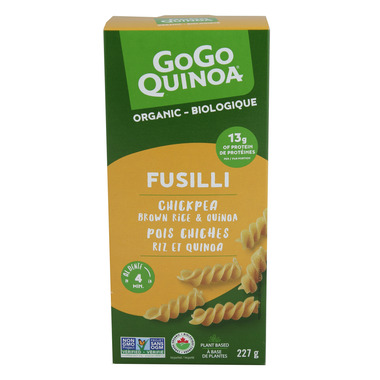 The chickpea fusilli is great addition to the gluten free pasta that Gogo Quinoa offers. Tastes great and holds up to the boiling with fantastic results. I will buy this again.