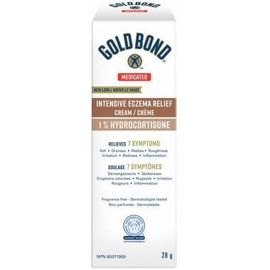 Gold Bond Eczema Relief 1% Hydrocortisone Cream Intensive Formula is your solution for the temporary relief of seven symptoms associated with eczema. This intensive formula of 1% Hydrocortisone helps relieve redness, itching, dryness, rashes, roughness, irritation, and minor skin inflammation. With a blend of five intensive moisturizers, including aloe, beeswax, glycerin, petrolatum, and mineral oil, This cream helps your skin to feel soothing, hydrating relief. Its hypoallergenic and clinically proven to provide the temporary relief you need. To ensure this product is right for you, always read and follow the label.