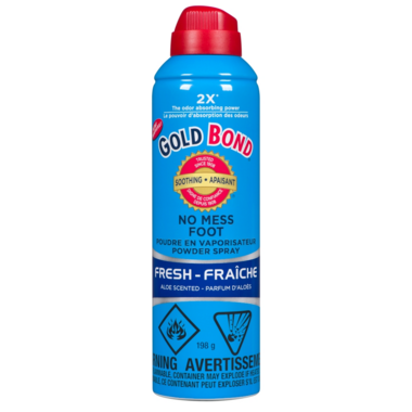 Gold Bond No Mess Foot Spray delivers the same odour and wetness protection as our Gold Bond Powder in a convenient, easy to use spray. Its triple action relief helps keep your feet cool, dry and comfortable. The continuous, focused spray delivers powder right where you want it and the 360 valve lets you spray it in any direction - even upside down. So, whether you're looking to stay cool and dry, or you just want to relieve and protect against odour, you can count on Gold Bond's triple action formula.