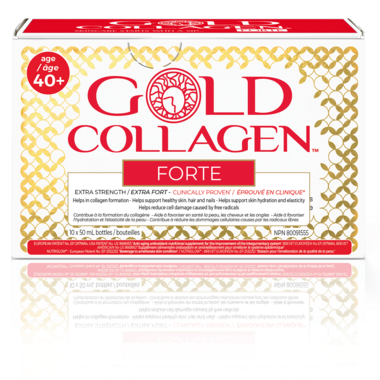 Gold Collagen Forte is specifically designed for women over 40. At this age the effects of time, hormonal shifts and lifestyle begin to take their toll on the skin - it feels less firm, drier and wrinkles appear deeper. The skin’s natural defenses weaken and become more susceptible to oxidative stress, which accelerates the ageing process. To help counteract the appearance of advanced signs of ageing, GOLD COLLAGEN® FORTE is enhanced with 2x more moisture-retaining hyaluronic acid compared to the PURE GOLD COLLAGEN® formula.