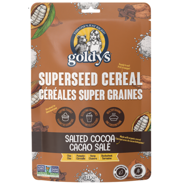 Goldys Superseed Cereal Salted Cocoa. Creamy like oatmeal, crunchy like cereal!