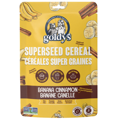 Goldys Superseed Cereal Banana Cinnamon. Creamy like oatmeal, crunchy like cereal!