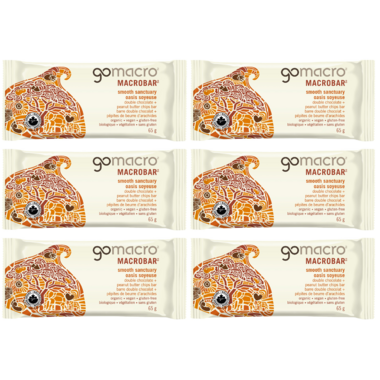 - 6x GoMacro MacroBar Smooth Sanctuary Double Chocolate + Peanut Butter Chip Protein Bar, 65g