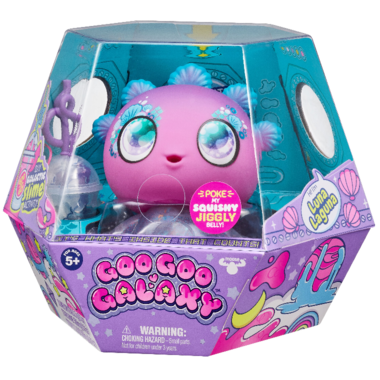 Say hello to the most adorable little space travelers to ever land on Earth! From far away Goo Goo Galaxy come the Goo Drops. They have crash landed on Earth and are looking for a new home. The Goo Drops' squishy, jiggly bellies are filled with some of the galaxy that they have traveled from – just give them a squeeze to see their sparkling, glittery galaxy move about inside them! Meet Luna Laguna, the fun filled, water loving Goo Drop who loves making new friends!