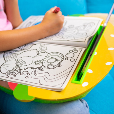 Learn & Play the Comfortable Way These kid-first creation stations make it comfortable to work or play wherever your child's adventures take them. Sized for kids and made with sensory-friendly materials they'll love, each Lap Desk is an ergonomic upgrade wrapped with a cloud-like touch. Let Creativity Run Wild The surface of the Cheeseburger Lap Desk offers an inviting space for your child to get their creative juices flowing. The built-in device slot is perfect for tablets or smartphones up to 11 inches wide, freeing up even more of the generous surface area for writing, snacking, reading, artwork, and gaming. Ergonomically Speaking With nearly 3 inches of padding between the user and the desk, it instantly adapts to the user's leg shape for ultra-light long-term use. Taking it a step further, the outer padding material itself feels just like a favorite stuffed animal to encourage creative time without sacrificing comfort.