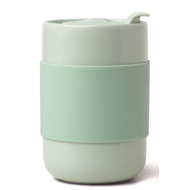 This tumbler is a stylish and responsible solution to disposable cups. Made of durable ceramic with a removable matte protective silicone sleeve, this reusable, portable, and dishwasher safe tumbler will be your new favorite. The ceramic tumbler and silicone sleeve are warm to the touch with a hot drink inside.