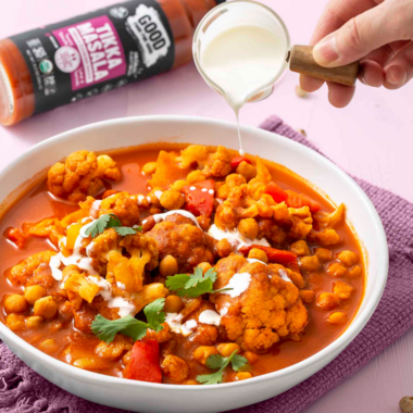 Medium spicy tomato Indian cooking sauce with lime and spices. Just add veggies and protein.