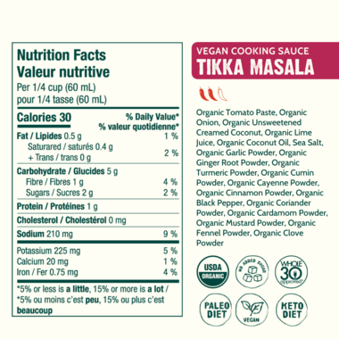 Ingredients: Organic Tomato Paste, Organic Onion, Organic Lime Juice, Organic Spices, Sea Salt, Organic Date Paste, Organic Coconut Oil, Organic Ginger Root Powder,Organic Coriander Powder, Organic Fenugreek Leaves, Organic Turmeric Powder, Organic Clove Powder, Organic Garlic Powder, Organic Cumin Powder, Organic Cinnamon Powder, Organic Cayenne Powder,Organic Black Pepper.
