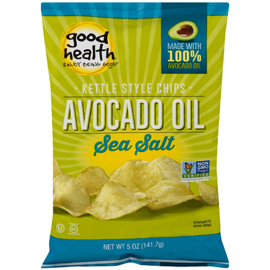 Good Health Kettle Style Chips Avocado Oil & Sea Salt are made with 100% pure avocado oil. This product is also gluten free, contains no artificial colours and no hydrogenated oils. So for times when nothing but crispy, crunchy, kettle style potato chips will satisfy reach for Good Health Chips and enjoy being good.