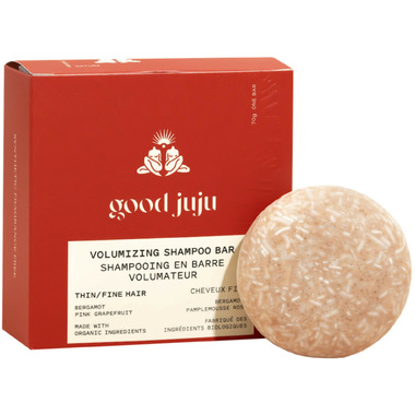 Good Juju Volumizing Shampoo Bar balances oil production and increases volume while improving overall hair and scalp health.