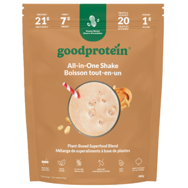 Protein blend (pea protein, milled golden flaxseed), soluble tapioca fibers, Peanut flour, Coconut milk powder* (coconut milk powder*, tapioca maltodextrin*, acacia gum*), Medium chain triglycerides (medium chain triglycerides from coconut oil, tapioca maltodextrin), Acacia gum, Guar gum, Xanthan gum, Fruits, vegetables and mushrooms blend (spinach, broccoli, carrot, sweet potato, orange, apple, strawberry, sunflower seed, shiitake mushroom, maitake mushroom, pomegranate juice powder*, acai juice powder*, goji juice powder*, grape juice powder*, amla fruit powder*, cranberry powder*, aronia powder*, sea buckthorn juice powder*, camu camu powder*, acerola juice powder*), Salt, Rebaudioside M, Bacterial culture and enzymes blend (rice maltodextrin, Bacillus subtilis, bromelain, papain). *Organic ingredients due , : wheat, soybeans, milk, eggs, tree nuts and fish