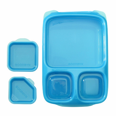 A dynamo for eating on the go - Goodbyn Hero comes with a three-compartment main container (fits a full sandwich!) and two Goodbyn dippers for ultimate flexibility. Goodbyn Hero keeps foods separated: sandwiches won’t taste like your banana and your fresh fruit won’t have crumbs in it! Goodbyn Hero is top rack dishwasher safe, BPA- and phthalate-free, and 100% recyclable.