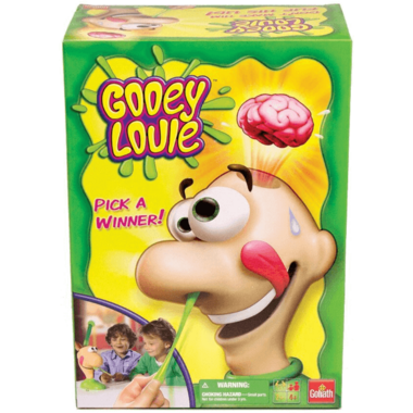Pull a gooey out of Louie's nose, but don't pick the wrong one... one random gooey will make Louie's head pop open and his brain will fly out! Helps kids develop fine (and gross!) motor skills. Kids love the big surprise when Louie flips his lid! For 2 or more players, ages 4 & up--tested for safety and quality.