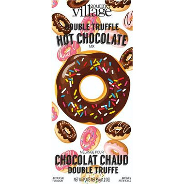 Gourmet du Village Mini Hot Chocolate Mixes for single servings. Enjoy this double truffle hot chocolate mix. Made in Canada.
