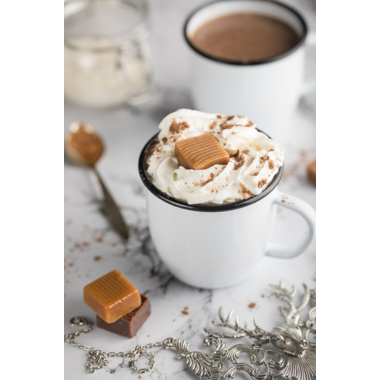 Snowglobe designed mini filled with the delicious creamy Salted Caramel flavored Hot Chocolate, ready to make one mug of instant warming comfort, simply mix with hot water or hot milk, all are 0% trans fat.