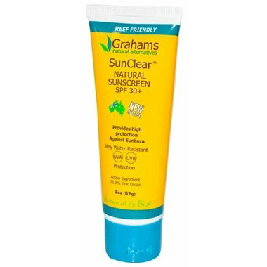 Safely enjoy fun in the sun with Grahams Natural Alternatives SunClear Natural Sunscreen SPF 30+. SunClear is a natural sun care protection formulated for all skin types, children and especially for those with sensitive skin.