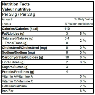 Oats, Brown rice syrup, Sunflower oil, Raisins (vegetable oil), Maple sugar, Pumpkin seeds, Quinoa, Water, Vanilla.