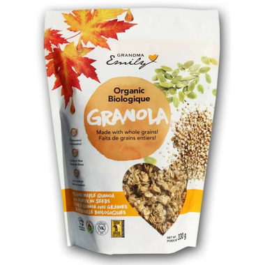 Grandma Emily Organic Granola with Maple Quinoa with Pumpkin Seeds has perfectly toasted oats and quinoa that are made with the utmost care and lightly sweetened with a touch of pure maple syrup.