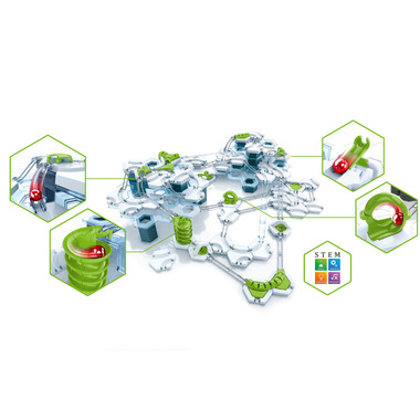 With the gravitrax interactive track system and marble run, you can design and build your own race tracks and experiment with gravity, magnetism, and kinetics to propel your ball to the finish. With a variety of tiles, levels, tracks and features, you can control the speed of each ball. The open-ended building concept offers endless possibilities to design a different track every time you play.