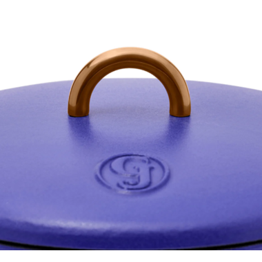 Dutch Baby is a round, 3.5qt (3312ml) cast-iron Dutch oven. Customized for smaller batches and kitchens, it's perfect if you frequently cook for one or two people.