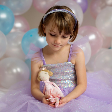 Bella the Ballerina is a beautiful handcrafted 13 inch doll with her own unique character and personality and embroidered facial details. She is wearing an adorable pink ballet dress, ballet slippers, and being the ballerina princess she is wearing a gold tiara. Bella is the perfect companion for keeping secrets, confiding wishes, and becoming best friends and sure to become one of childhood's favourite memories.