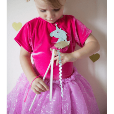 Great Pretenders 3D Unicorn Wand come with the power of unicorns! Select from three amazing colour combinations, or get all three to complete the set. With beautiful sparkle and the perfect matching outfits, these wands are an instant hit! These unicorn wands are accented with fluffy tulle, 3D glitter foam detailing, and gems.