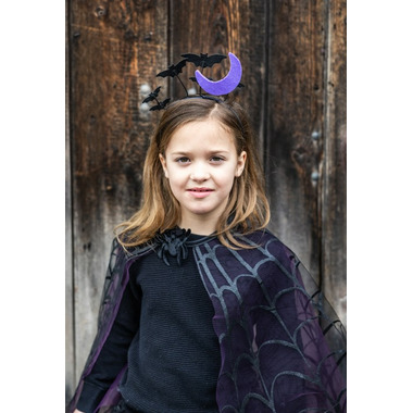 Get into the Halloween spirit with the Bat-acular headband! Featuring adorable bats standing up against a backdrop of a glowing moon, this headband will make you feel like you're watching bats dance around the moon all night long. Perfect for adding a touch of spooky fun to any outfit or costume, this headband is a must-have accessory for the Halloween season.