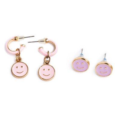 This adorable set of All Smiles Pierced Earrings brings big smiles to everyone's face! One set with dangling smiles and another set with smile face studded design, these charming smile faces will spread joy and cheer all around!