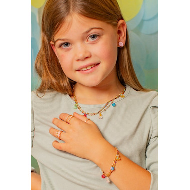 The multi-gem necklace sparkles with every movement with its rainbow of colours, and the gold necklace featuring 3 adorable bears and 2 flowers is simply irresistible! You cant help but LOVE this necklace! With its adjustable length, this is a fun set of necklaces for your little one to love and enjoy for many years to come! Pair it with the matching bracelet to create an amazing set for everyone to admire!