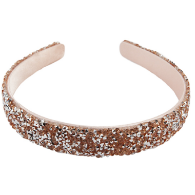 This adorable Boutique Gummy Glitter Headband is a bright and sparkly hair accessory, featuring gummy-like jewels and boasts a meticulously curated pink or rose-gold design.