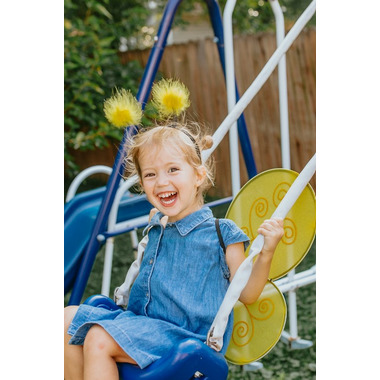 Great Pretenders Bumble Bee Wings and Headband is great for buzzing around the house or for fluttering around the backyard. Featuring soft marabou feather accents and gold glitter details, both pieces will have your little one flying around with excitement!