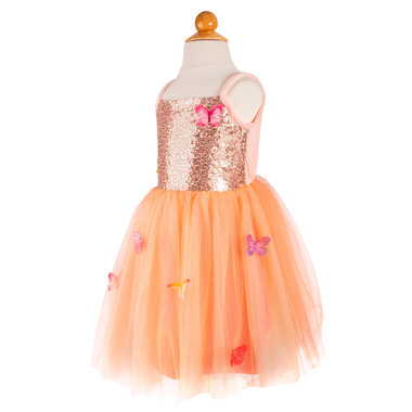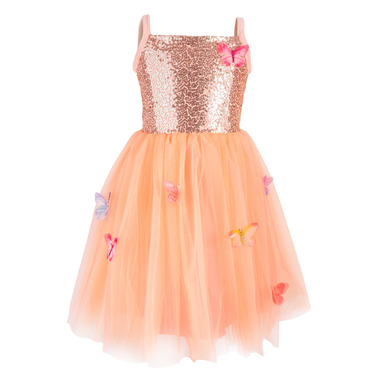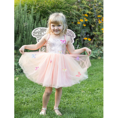 Take flight in sparkle-filled style with Great Pretenders Butterfly Bliss Dress, made to match perfectly with (sold separately) Butterfly Bliss Wings! The bodice glimmers with all over sparkles, shining like wings fluttering in the sun! The skirt floats in soft layers of tulle, delicately adorned with tiny blue and pink butterflies that look as if they've gently landed in mid-twirl.