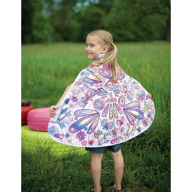 Great Pretenders Colour-A-Cape Fairy has been designed with an elegant fairy print which can be coloured in by your little fairy! This provides hours of fun to keep your little one busy. Each fairy cape is made with a purple satin lining, bias cut binding and has a fastened loop closure at the neck. Each colour cape comes with 6 markers. Best of all, the capes are machine washable!