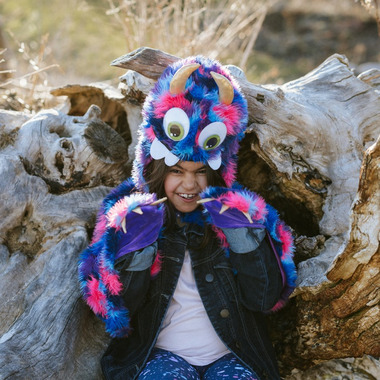 Goober the Monster is the coooolest and unique cape you will ever find! Your little one will be beyond excited to wear it every day to play in character of an adorable friendly furry friend! The amazing eyes are jumping with JOY! The golden horns are screaming IM FUN! The finely detailed teeth are open to a lot of LAUGHTER! The hand pockets are finished with golden claws and ready for SUPER ACTION! This cape is a WINNER and will create unforgettable memories to last a lifetime!